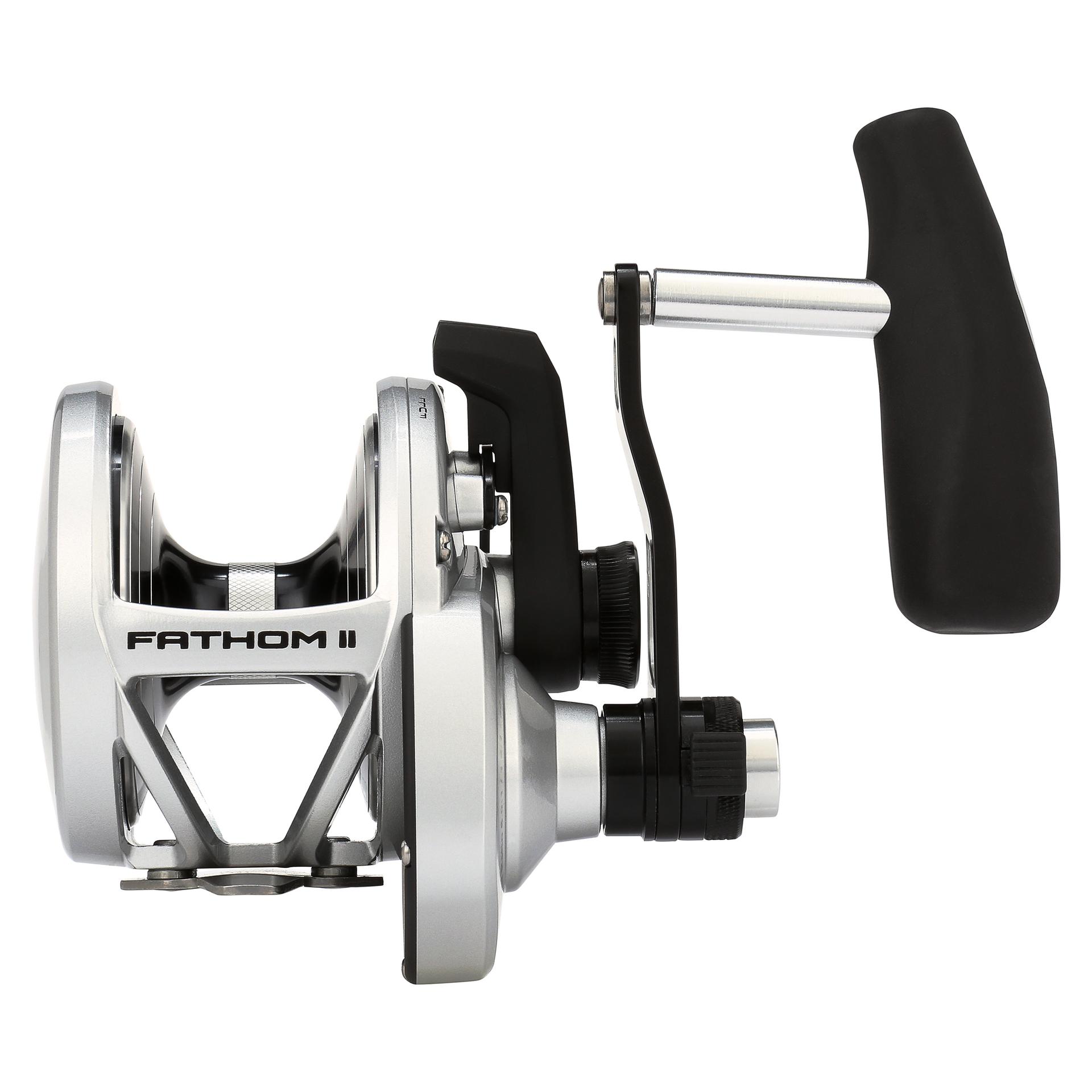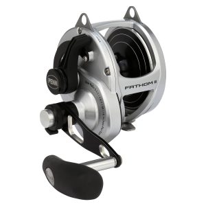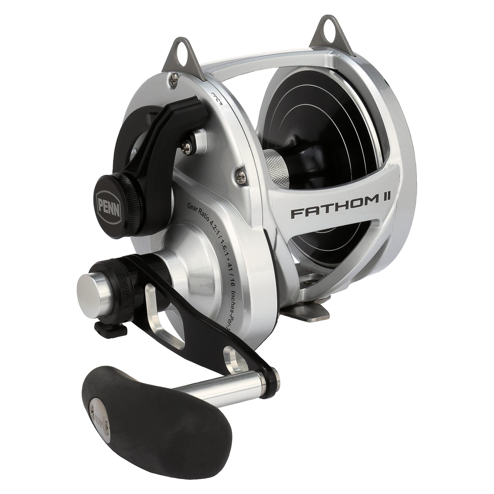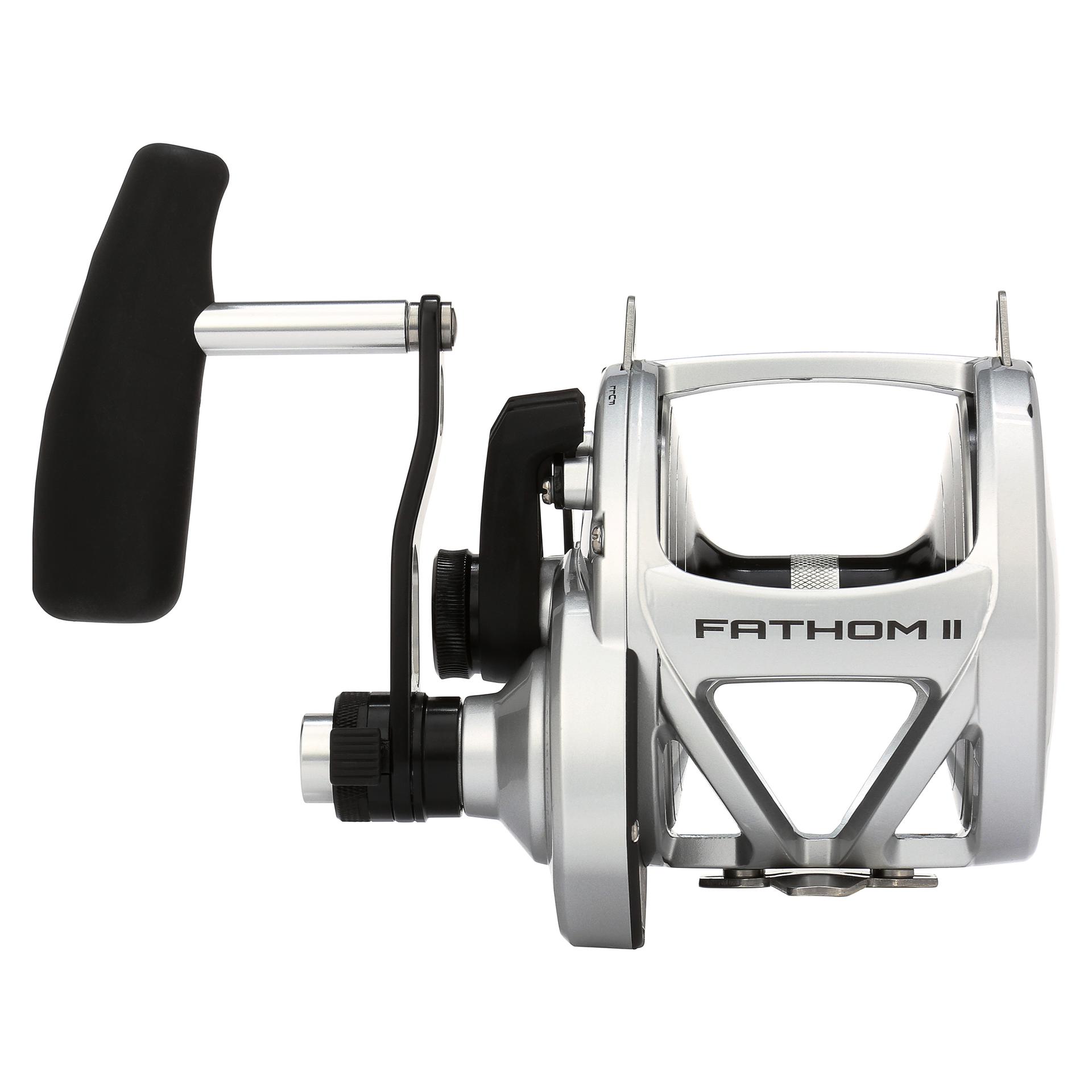The all-new PENN Fathom II Lever Drag reels take a class-leading reel and raise the bar even more. New models. sizing. features. and optimized billfish models round out the assortment to give a model for every application. Integrating the palm side plate and frame allows the PENN Fathom II Lever Drag reels to be more compact in hand and increases strength. The Pull-to-Turn preset knobs allow the angler to truly set it. and forget it. At the PENN Fathom’s core is a stainless steel main and pinion gear and a forged and machined aluminum spool for maximum durability.