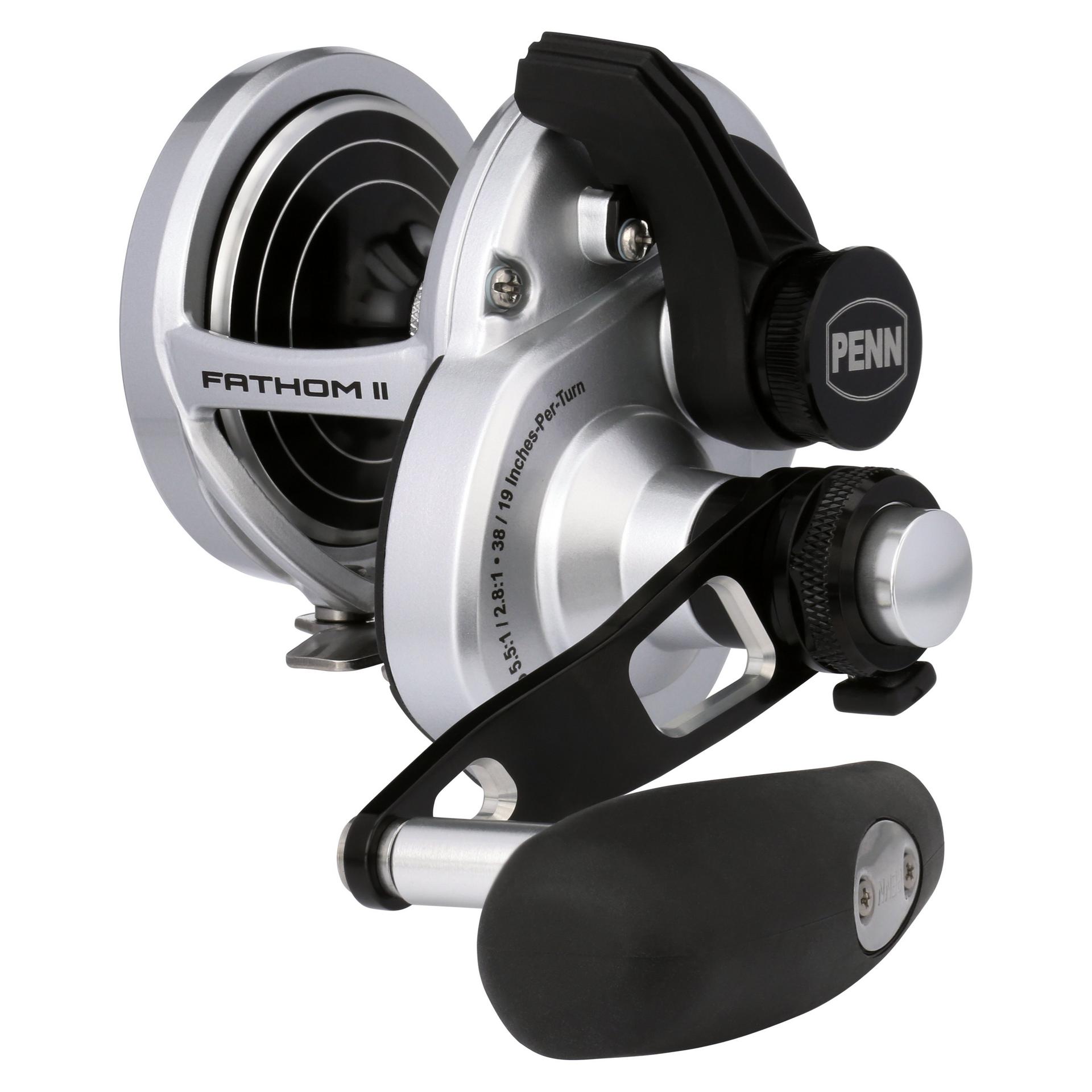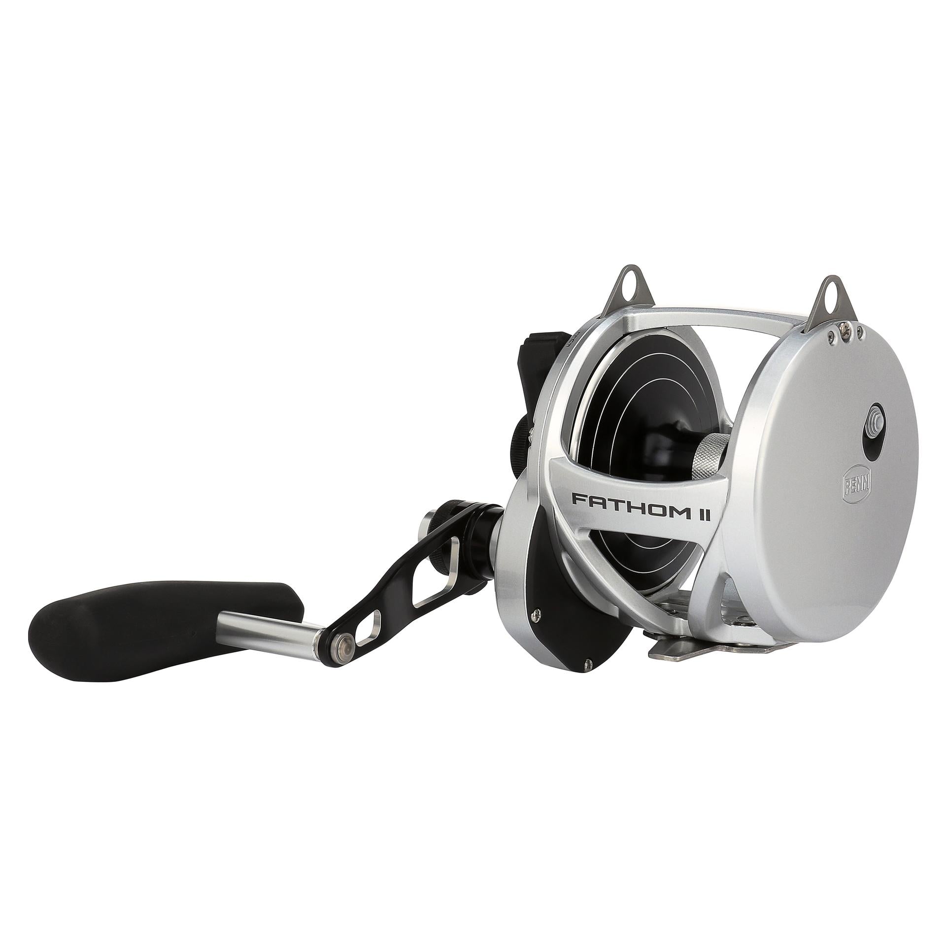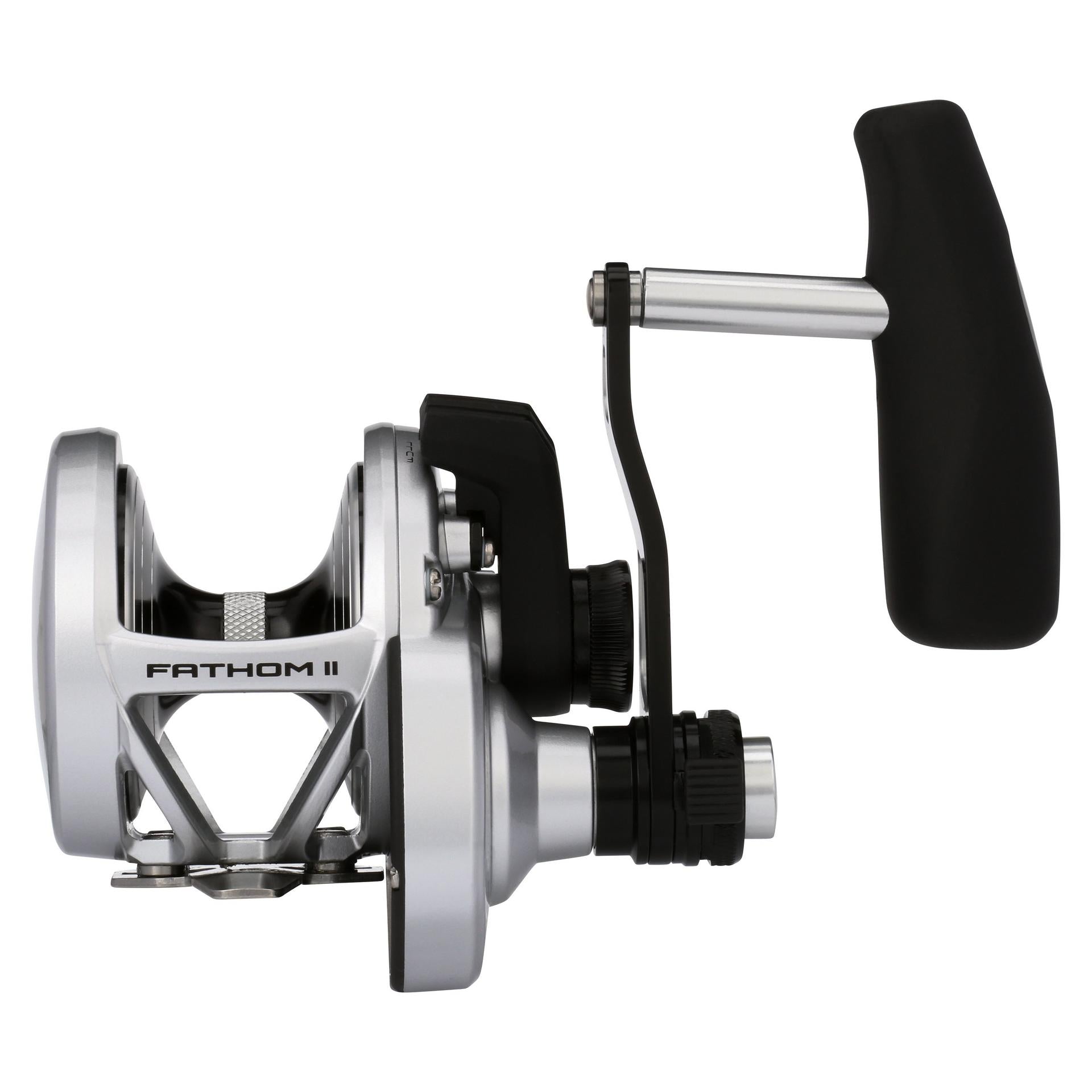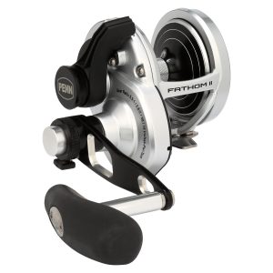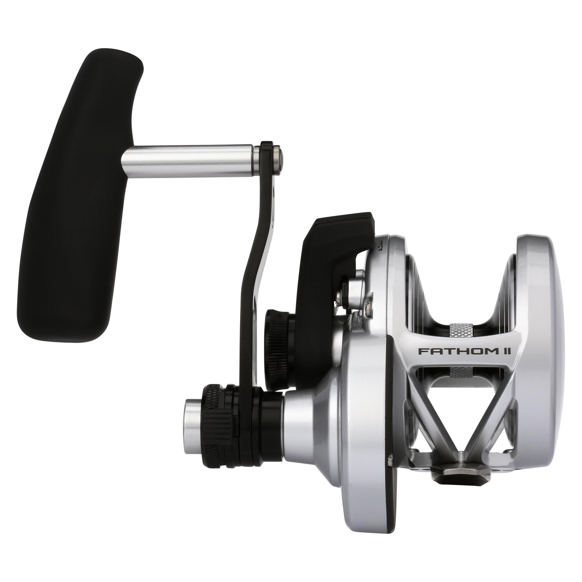 The all-new PENN Fathom II Lever Drag reels take a class-leading reel and raise the bar even more. New models. sizing. features. and optimized billfish models round out the assortment to give a model for every application. Integrating the palm side plate and frame allows the PENN Fathom II Lever Drag reels to be more compact in hand and increases strength. The Pull-to-Turn preset knobs allow the angler to truly set it. and forget it. At the PENN Fathom’s core is a stainless steel main and pinion gear and a forged and machined aluminum spool for maximum durability.