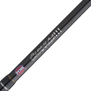 The Penn Carnage III Kite Rod is truly in a class of it’s own. This rod represents the next generation of high-performance rod building with a powerful. lightweight blank that is also extremely durable. The proprietary LS2 blank construction provides a very durable blank. while maintaining a lightweight feel. This 2’1 blade only design allows anglers to customize the butt section of the rod with their ideal fit and finish for any fishing situation. Spec’d with high-end components like a Fuji Kite Top and Rubber Shrink tube handle. this rod will be anglers’ next go-to workhorse. Aftco aluminum butts sold separately.
