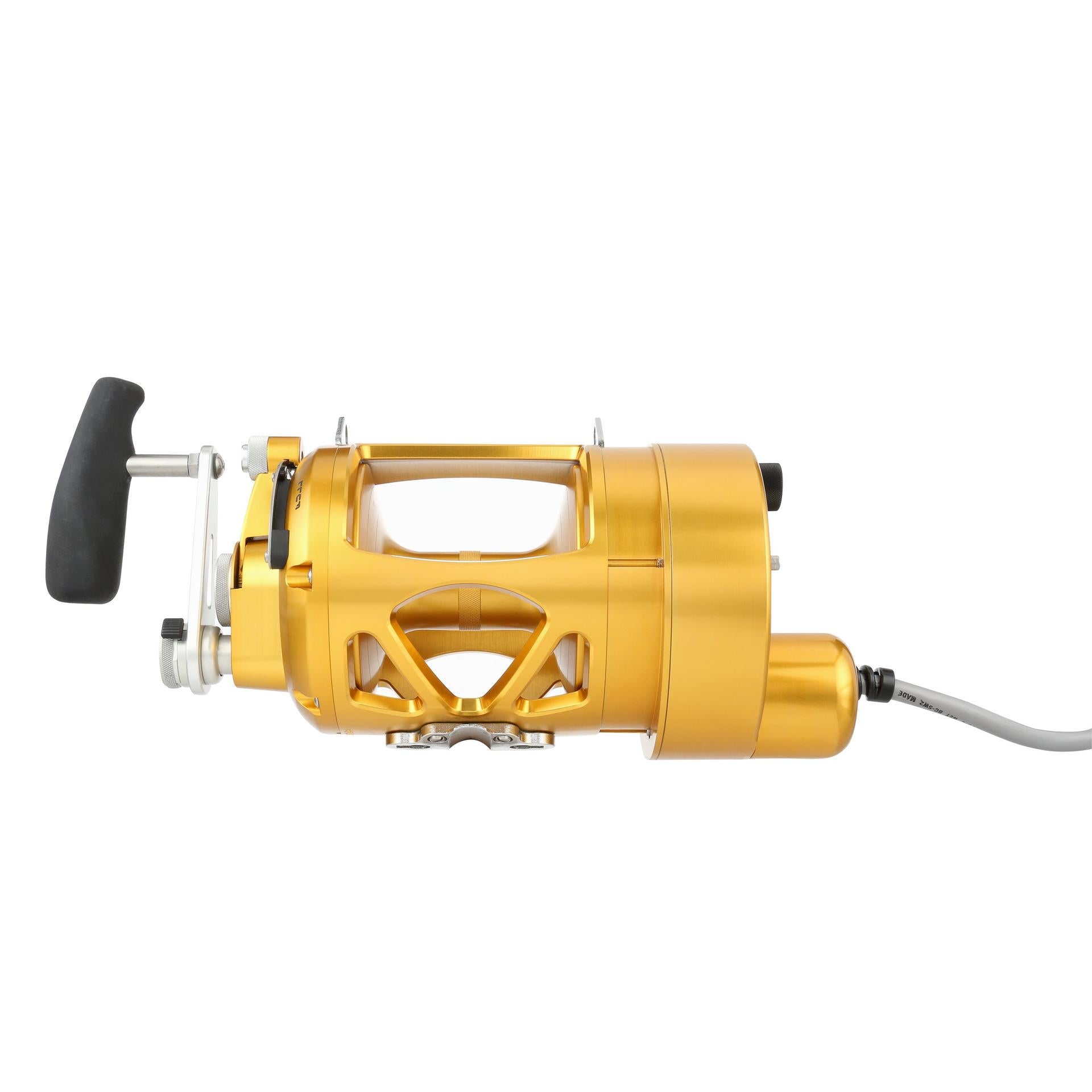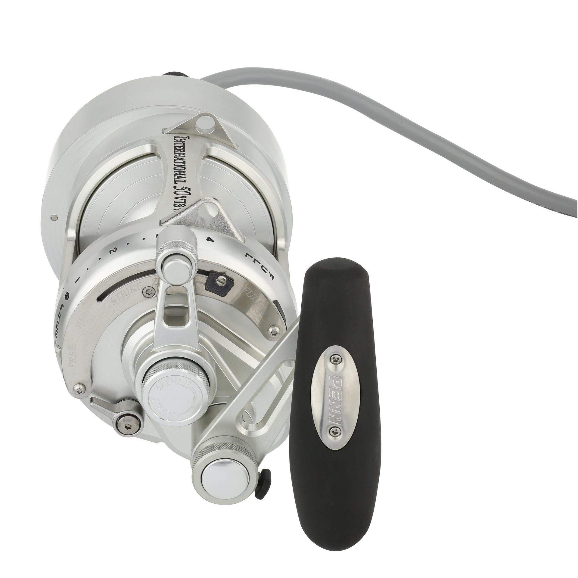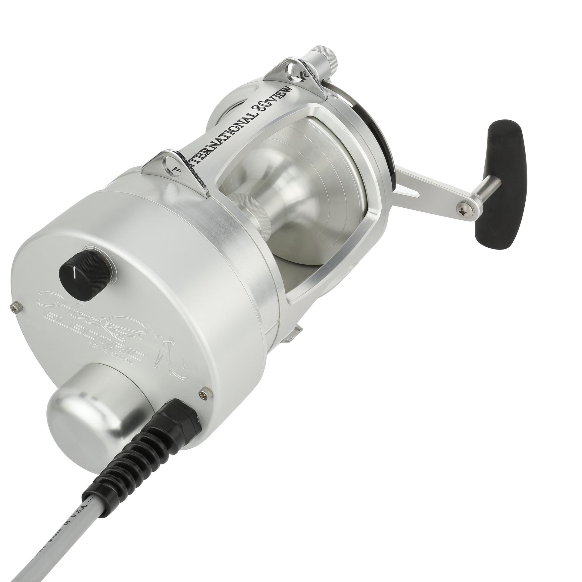 The Hooker Electric PENN International Standard reel can retrieve at speeds of 500 feet per min with full variable speed at the turn of the dial. The motor on the standard reels is permanently attached to the left side of the reel. but the reel handle still works for those that want to fight a fish manually. at the push of a button. Built from Aircraft-grade Aluminum construction right here in the USA. these reels are built tough to last a lifetime. .