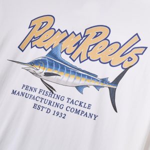 The most iconic game fish in the world is dominating the back side of this comfortable poly cotton t-shirt and it is duplicated along the historic Penn Reels logo on the chest as well. This version of the logo was featured on catalogs and reel boxes from decades ago. At that time PENN Reels were already tried and trusted in battle against the majestic marlin.Â