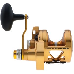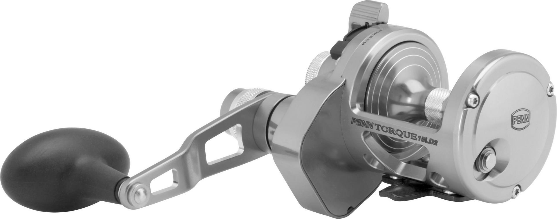 PENN Torque Lever Drag 2-Speed is made in the USA of domestic and imported components. and features an open top design with a machined and anodized aluminum body and sideplates. along with a lightweight forged aluminum spool. Quick Shift 2-Speed system easily shifts into high or low gear. Engineered to provide long lasting PENN durability. the Dura- Drag System virtually eliminates hesitation. even under extreme drag settings.