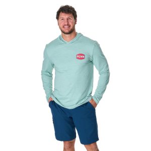 Built from performance polyester. this hooded fishing shirt is a must-have for the saltwater angler. UV protection shields you from harmful rays. while the stain-resistant fabric keeps you looking sharp. The silicone wash ensures a softness. The bold PENN is printed to last.